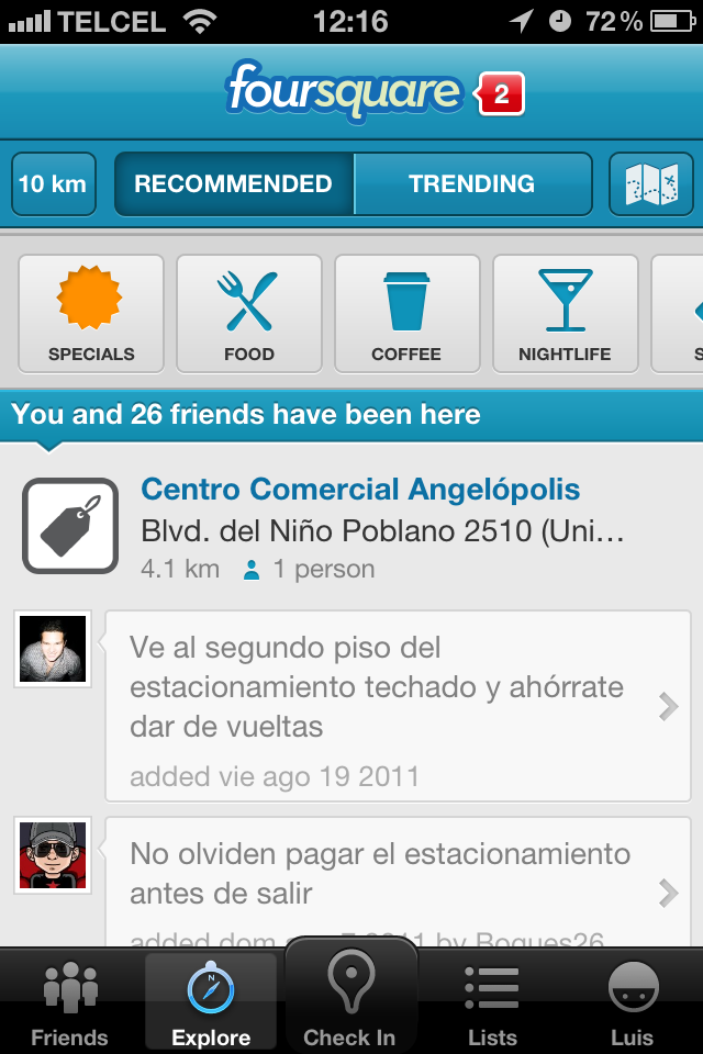 - Consigue Tips y comentarios de tu negocio: En Foursquare los usuarios pueden dejar “propinas virtuales” y comentarios sobre los negocios en los que han estado. Sin duda alguna esto ayuda a la experiencia de marca al poder, un consumidor concreto, conectar con las recomendaciones de otros.