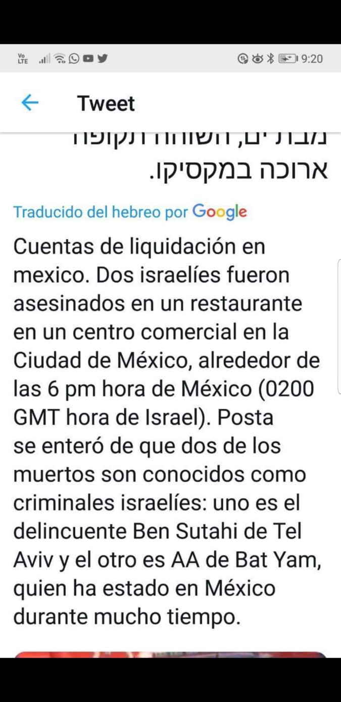 Encontré esta información en el portal de Aristegui noticias. Existe información que sugiere que no fue un crimen pasional. Está la foto de captura de las noticias que se están difundiendo en Israel y el video de la captura de la mujer.