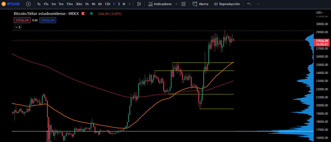 Una vez que hayas ajustado los parámetros del indicador Dow Theory en AIZEN_, podrás analizar la tendencia del mercado y tomar decisiones de inversión.