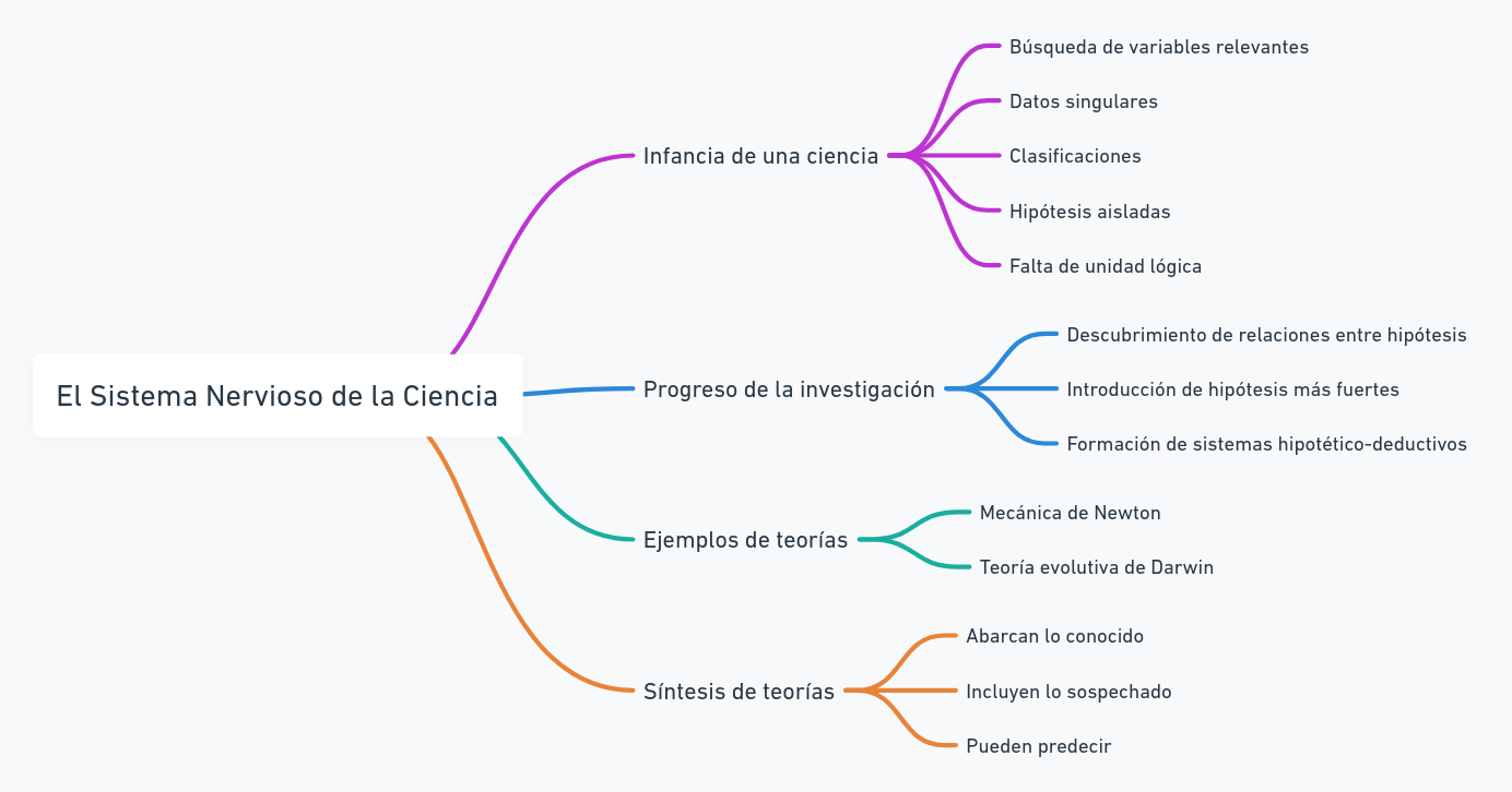 El sistema nervioso de la ciencia puede entenderse como la estructura subyacente que integra y coordina los diversos componentes de una teoría científica. En las etapas iniciales de una ciencia, la investigación se enfoca en identificar variables relevantes, recopilar datos singulares, clasificar fenómenos y formular hipótesis aisladas. Esta fase, a menudo caracterizada por la fragmentación y la falta de unidad lógica, es esencial para el establecimiento de los cimientos empíricos y conceptuales de la disciplina.