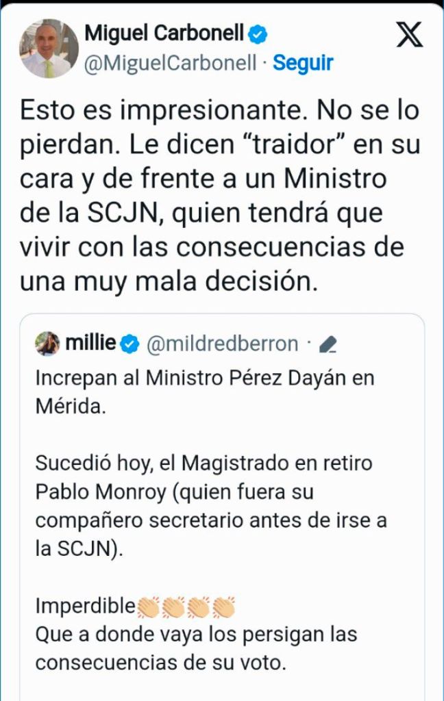 El nombre de los protagonistas importa menos que la estructura de fondo: un sistema de justicia que, bajo la retórica de la independencia, ha servido históricamente como baluarte de las élites económicas y políticas, solo para ser sacrificado (cuando resulta conveniente) en el altar de la «transformación democrática». Pérez Dayán no es, en este sentido, ni héroe ni villano singular: es simplemente un engrane que dejó de funcionar según las expectativas de su maquinaria original.